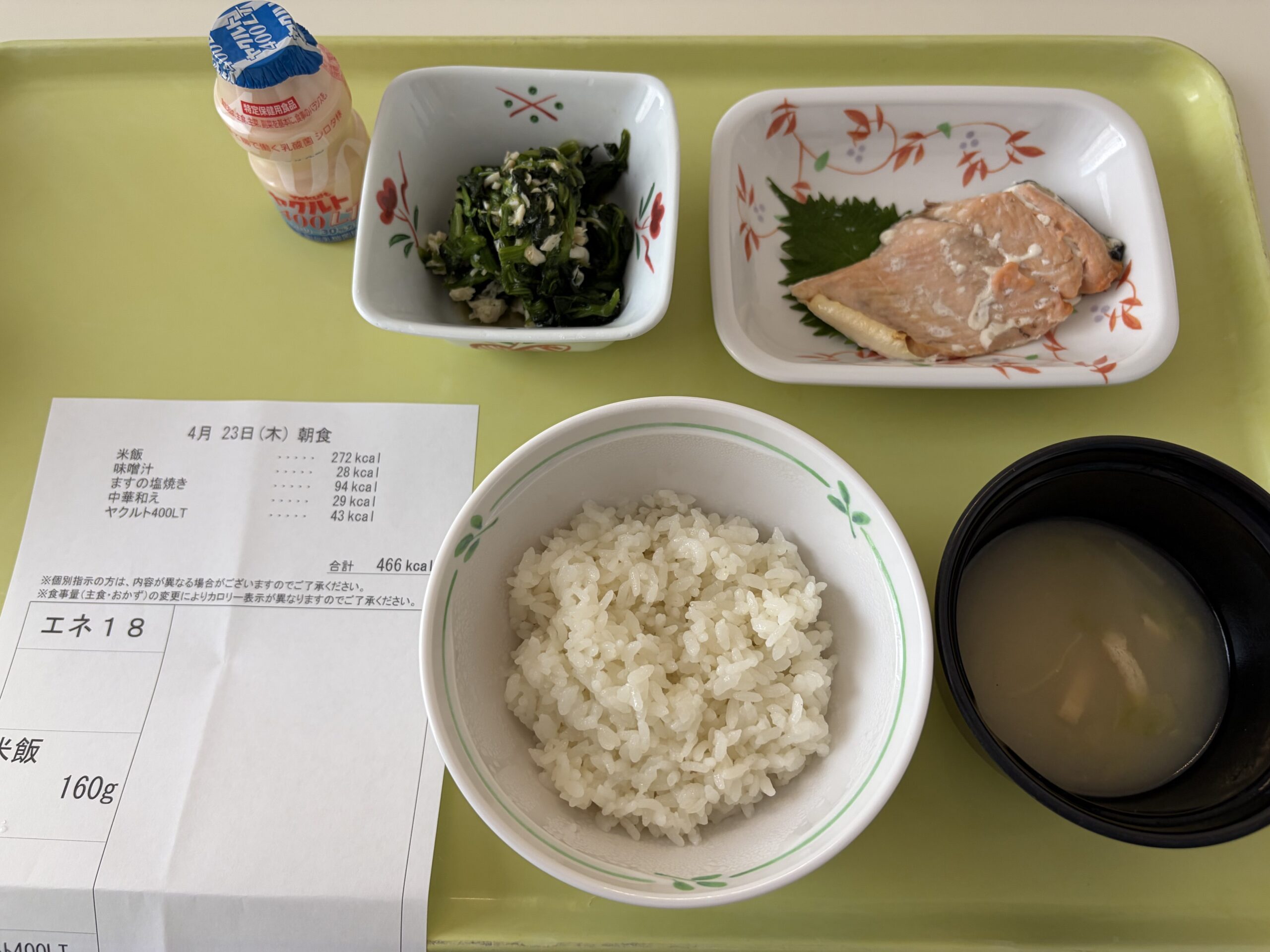 入院中最後の朝食